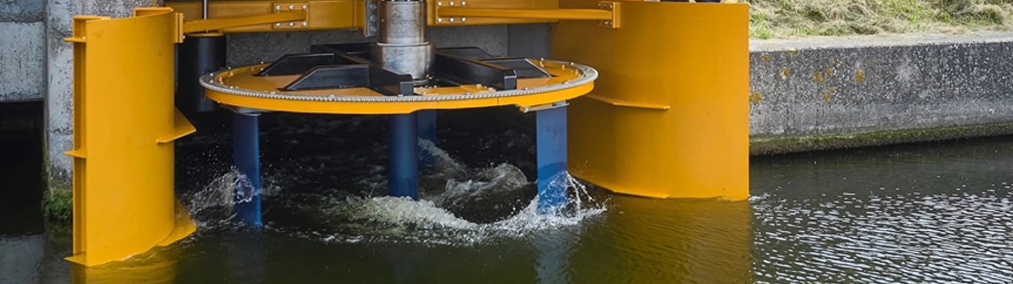 In Nederland is er nog geen woord voor, maar de Duitsers noemen het ‘Dunkelflaute’: een periode waarin weinig tot geen energie kan worden opgewekt door middel van wind en zonlicht, met waterstof als energiedrager nou net de twee pijlers van de energietransitie in Nederland. “Vergeleken met wind en zon is water een heel betrouwbare en voorspelbare energiebron”, verzekert directeur Reinier Rijke van Water2Energy. “Onze verticale-as-turbines generen energie zodra er sprake is van stromend water. En daarvan is wereldwijd altijd en overal sprake, door de dagelijkse afwisseling van eb en vloed, in rivieren die richting lager gelegen zeeën en meren stromen en in door mensen gecreëerde kunstwerken, zoals sluizen en gemalen. In theorie levert stromend water per vierkante meter ongeveer twintig keer zoveel energie op als wind. Daar staat tegenover dat windmolens veel schaalbaarder zijn dan onze turbines, die je kunt zien als een omgekeerde variant van de Voith Schneider Propellers die worden gebruikt om sleepboten voort te stuwen.”